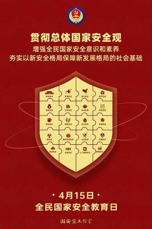 《中華人民共和國***法》第十四條明確規定,每年的4月15日是全民***教育日。今年的4月15日是第八個(gè)全民***教育日,主題是“貫徹總體***觀(guān),增強全民***意識和素養,夯實(shí)以新安全格局保障新發(fā)展格局的社會(huì )基礎。